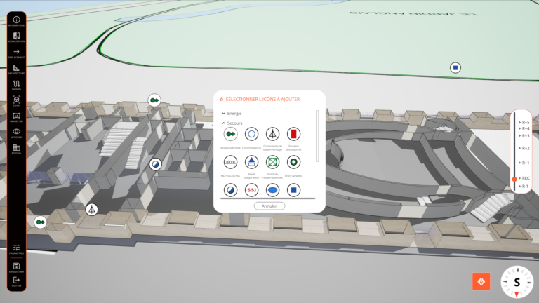 • Repérages dynamiques des systèmes de sécurité (baie accessible, colonne sèche, vanne de gaz…)