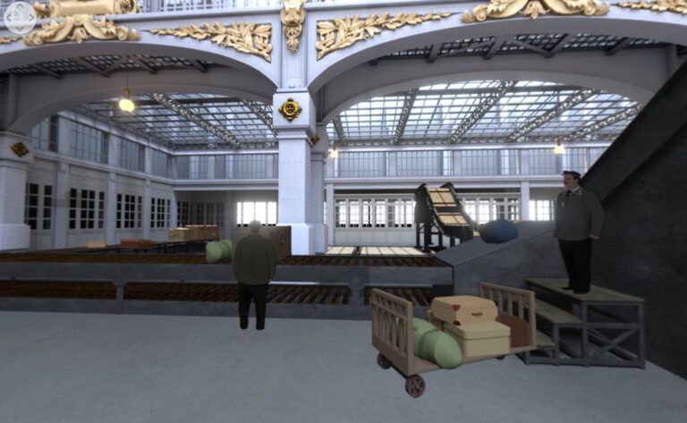 La scène 3D 360°, animée par des personnages d’époque, a été récréée à partir des cartes postales et de la documentation historique récoltée par le comité scientifique du Musée.