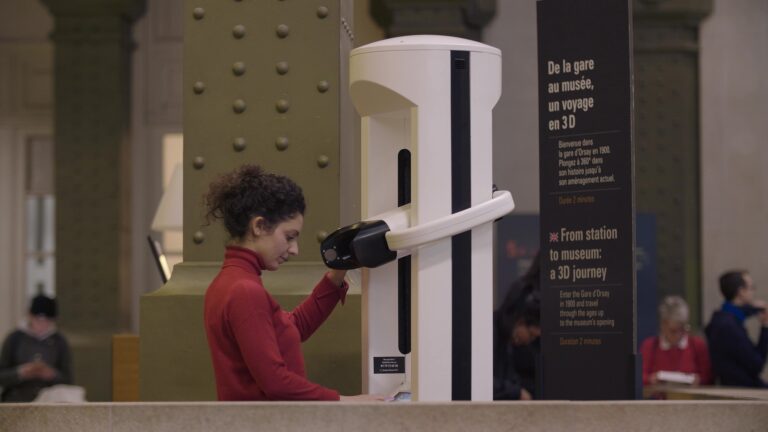 Conçue pour une utilisation gratuite et en libre-service, et adaptée au flux important de visiteurs, l’expérience VR est diffusée depuis deux points de vue différents sur la Nef de l’Orsay, à partir de deux bornes Timescope installées dans l’espace d’accueil du musée.