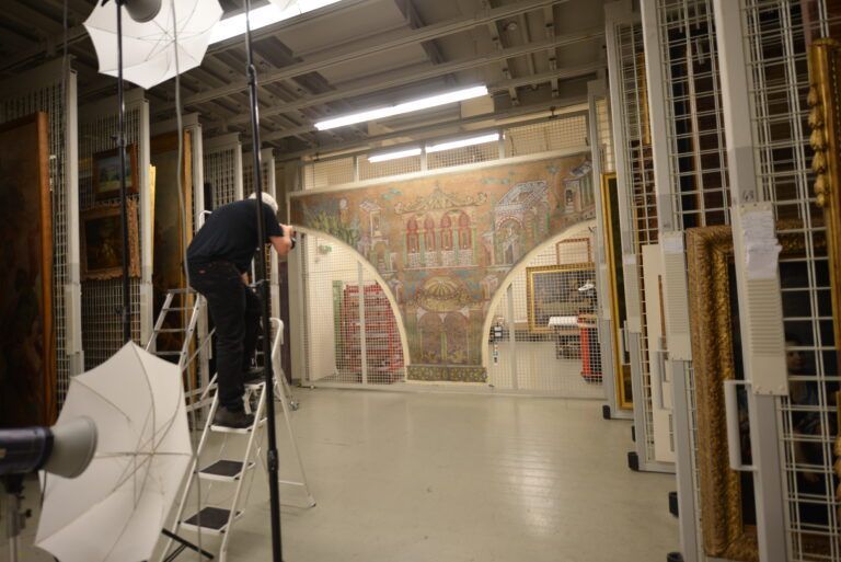Numérisation des neufs tableaux relevés de la mosaïque à fonds d’or de la Grande Mosquée de Damas. La digitalisation de très haute précision a été menée par les équipes de photogrammètres d’AGP dans les réserves du Musée. Le rendu sera utilisé pour une reproduction numérique exacte des panneaux dans l’objectif d’en permettre l’exposition au public.