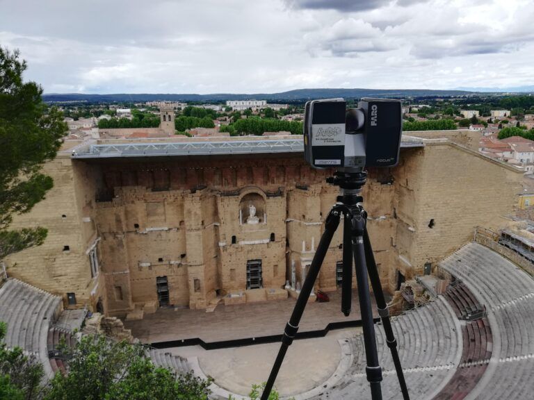 En collaboration avec le CIREVE de Caen (Centre Interdisciplinaire de Réalité Virtuelle) et sous la commande de Cultureespaces, nos équipes ont mis au point un dispositif de médiation culturelle pour la valorisation du théâtre antique d’Orange, AGP a ainsi réalisé un film immersif qui invite les spectateurs à vivre un voyage dans le temps. Grâce à un casque de réalité virtuelle, le public visite le chantier de construction du théâtre, pierre après pierre, au premier siècle de notre ère.