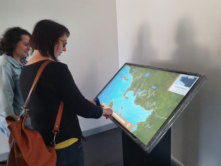 La borne tactile est le support le plus approprié à une utilisation partagée par les groupes de visiteurs, pour une expérience de médiation de courte durée lors du parcours muséal ou de visite. Sans contraintes de gestion pour le personnel d’accueil et grâce à un support solide et durable, les applications pour table tactile s’adaptent tout particulièrement à la valorisation des itinéraires de villes et territoires dans les offices du tourisme et à l’approfondissement historique et iconographique « silencieux » dans les lieux de culte.